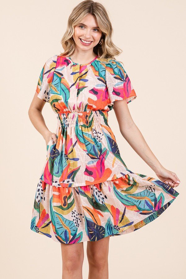 Be the first to review “Lime ‘N’ Chili Abstract Print Mini Dress in Fuchsia Combo”