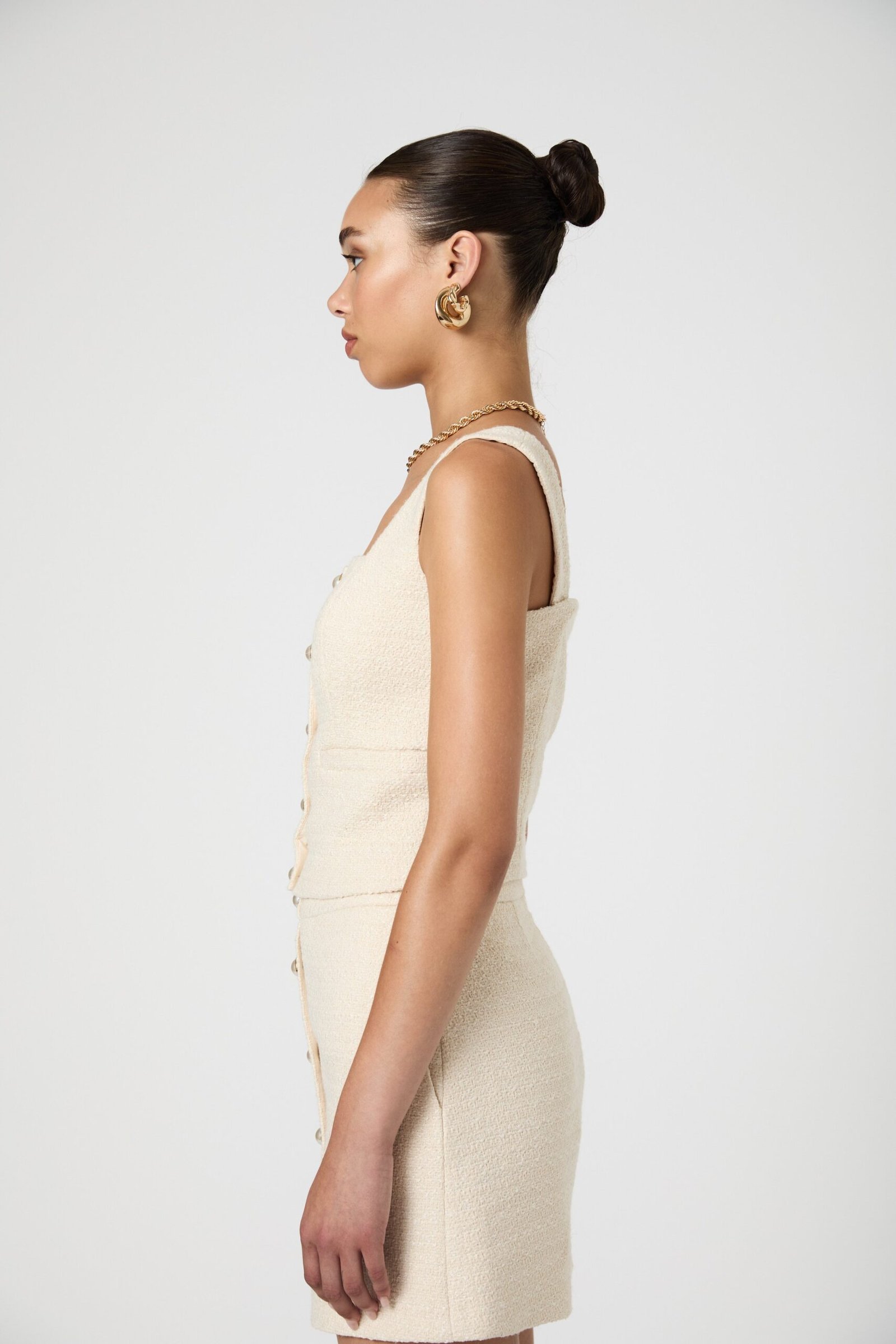 Structured Tweed Button Front Top